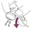 Kvapky vody na slúchadlách utrite mäkkou suchou tkaninou a pod. Ak v otvore nástavca zostanú kvapky vody, budete počuť len slabý alebo žiadny zvuk. V takom prípade odpojte nástavce slúchadiel, nasmerujte zvukový kanál smerom nadol a niekoľkokrát zatraste zvukovým kanálom a odstráňte všetky kvapky vody.