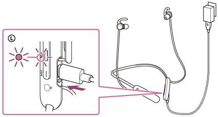 - Hvis headsettet ikke har været brugt i længere tid og lades op, går der muligvis et stykke tid, før indikatoren (rød) lyser. Vent et øjeblik, indtil indikatoren lyser.