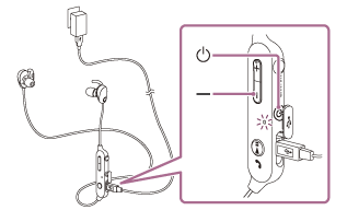 Ak sa slúchadlá nedajú zapnúť alebo ak sa nedajú používať, aj keď sú zapnuté, počas nabíjania súčasne stlačte tlačidlo