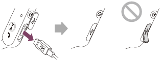 Po dokončení nabíjania odpojte kábel micro-USB a potom pevne zatvorte kryt portu micro-USB, aby sa do slúchadiel nedostala voda a prach.
