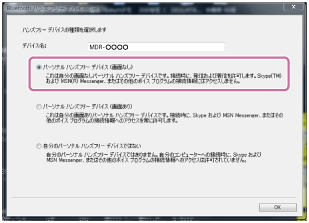 - [パーソナル ハンズフリー デバイス(画面なし)]を選び[OK]をクリックする。
