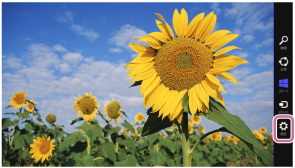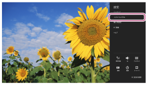 - デスクトップ画面の右上隅にマウスポインターを合わせて(タッチパネルの場合は画面の右端からスワイプして)、表示されたチャームから[設定]を選択する。