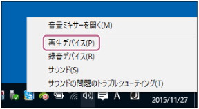 - スピーカーアイコンを右クリックして[再生デバイス]を選ぶ。