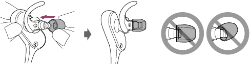 - Bevestig de oordopjes niet los of schuin.