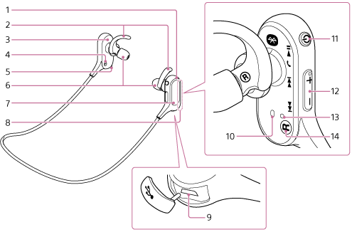 Для заряджання гарнітури підключіть до цього порту комп’ютер через кабель micro-USB, що входить до комплекту. - Мікрофон