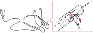 - ヘッドセットを付属のマイクロUSBケーブルを使って、USB ACアダプター(別売)に接続することで充電する。(推奨:AC-UD20)