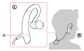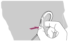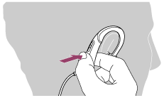Натиснете бутона с палец, докато поддържате ухото си и десния модул с показалец.