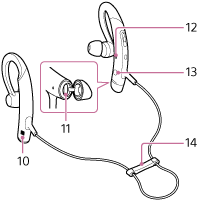 S’allume en rouge ou en bleu pour indiquer l’état de l’alimentation ou de la communication du casque. - Repère R (droite)