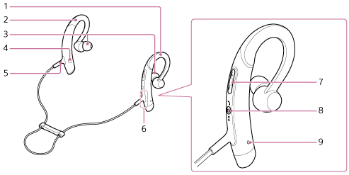 ヘッドセットの電源状態と通信状態を赤と青で表示します。 - Rマーク