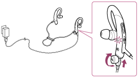 - ヘッドセットを付属のマイクロUSBケーブルを使って、USB ACアダプター(別売)に接続することで充電する。(推奨:AC-UD20)