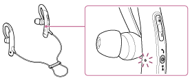 ボタンから指を離したあともランプ(青)が点滅していることをご確認ください。音声ガイダンス「Power on」(電源が入りました)が流れます。