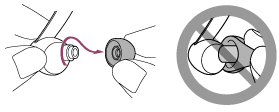 Se os auscultadores tiverem tendência a sair ou se sentir falta de som de baixa frequência, altere os auriculares para outro tamanho com um ajuste confortável.