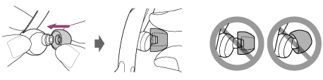 - Ušesnih čepkov ne nameščajte tako, da bi bili slabo pritrjeni ali postrani.