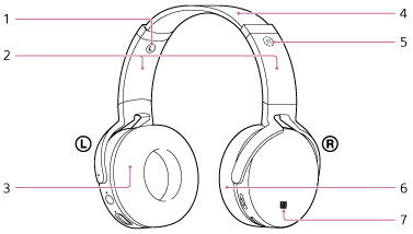 Ανάβει με κόκκινο ή μπλε χρώμα για να υποδηλώσει την ενεργοποίηση/απενεργοποίηση, το φορτίο που απομένει στην μπαταρία ή την κατάσταση BLUETOOTH των ακουστικών. - Κουμπί