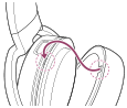 - Τοποθετήστε το δάχτυλο σας στην εγκοπή και κατόπιν πιέστε και μετακινήστε μια φορά το δάχτυλο σας γύρω από το περίβλημα του προστατευτικού "μαξιλαριού" για να τοποθετήσετε το περίβλημα στην εγκοπή του κύριου τμήματος.