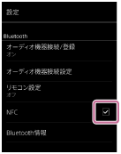 設定]をタップする。 - [Bluetooth]の[NFC]にチェックマークが入っているか確認する。