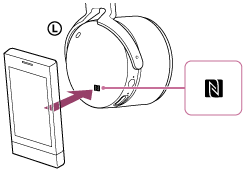 - Se tocar com os auscultadores num smartphone compatível com NFC, o smartphone termina a ligação BLUETOOTH com qualquer dispositivo atual e liga-se aos auscultadores (função Conecte-se com um só toque).