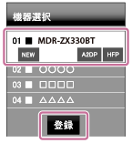 - [MDR-ZX330BT]を選び[登録]を押す。