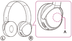 - 연결하려는 BLUETOOTH 장치의 안테나와 헤드셋의 내장 안테나 사이에 있는 장애물을 제거하십시오. 헤드셋의 안테나는 아래의 점선으로 표시된 부분에 내장되어 있습니다.
