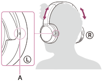 - Îndepărtați orice obstacole dintre antena dispozitivului BLUETOOTH care urmează a fi conectat și antena integrată a setului de căști. Antena setului de căști este integrată în partea indicată cu linia punctată de mai jos.