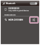 Izberite [Settings] – [Bluetooth] – ikono nastavitev ob vnosu [MDR-ZX550BN].