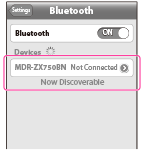 [Bluetooth]. Upewnij się, że wybrano opcję [ON], a następnie dotknij [MDR-ZX750BN].