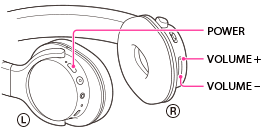 Zapnite slúchadlá stlačením tlačidla POWER na viac ako 2 sekundy pri súčasnom stláčaní tlačidla VOLUME + alebo VOLUME –.
