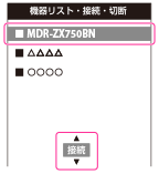 [MENU]→[便利ツール]→[Bluetoothメニュー]→[機器リスト・接続・切断]を選ぶ。