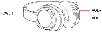 - Pour mettre le casque sous tension, maintenez le bouton POWER enfoncé plus de 2 secondes tout en maintenant le bouton VOL+ ou VOL– enfoncé.