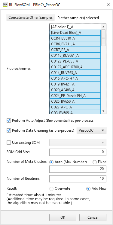 When the parent gate is changed or the unmixing settings are changed after performing advanced analysis (BL-FlowSOM/UMAP/FIt-SNE), the update notification icon (