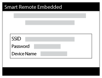 (taikomoji programa) → [Application List] → [Smart Remote Embedded]. - Kai gaminys paruoštas ir jį galima prijungti, jame pateikiamas informacijos ekranas. Sujunkite išmanųjį telefoną ir gaminį vadovaudamiesi šia informacija.