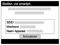 (Draadloos) → [Bedien. via smartph.]. - Wanneer het apparaat klaar is voor de verbinding, wordt op het apparaat een informatiescherm afgebeeld. Sluit met behulp van die informatie de smartphone en het apparaat aan.