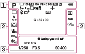 Список піктограм у режимі зйомки