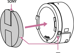 Juster mærket (-) på kameraet med mærket (-) på holderen, og drej derefter holderen, indtil dens LOCK-position er ud for mærket (-) på kameraet.