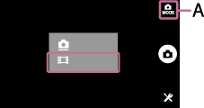 - Norėdami įjungti filmavimo režimą, palieskite fotografavimo / filmavimo perjungimo mygtuką (A).