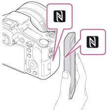 (позначки N). - Торкніться смартфоном виробу не менше, ніж на 1-2 секунди, поки не запуститься програма «PlayMemories Mobile».