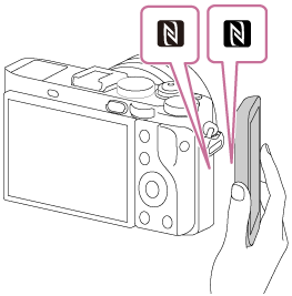 - Допрете смартфона към продукта за 1-2 секунди, докато PlayMemories Mobile стартира.