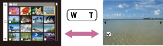 Натиснете бутона Т от бутона W/T (мащабиране) в режим на индекс, за да се върнете към режима на единично изображение, натиснете бутона W в режим на единично изображение, за да се върнете към режима на индекс.