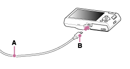 2. Свържете фотоапарата директно към компютър чрез специализирания USB кабел (включен в комплекта) (A).