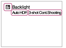 Keď fotoaparát rozpozná scénu, na displeji sa zobrazí ikona rozpoznania scény. Ak je to potrebné, zobrazia sa aj vhodná funkcia snímania pre rozpoznanú scénu a počet uvoľnení uzávierky.