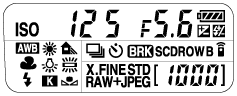 Det går att ställa in slutartid och bländare, exponeringskompensation, blixtkompensation, ISO-värde, vitbalans, matningsläge, bildkvalitet m.m. med hjälp av displaypanelen på kamerans ovansida.