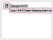 Wenn die Kamera eine Szene erkennt, erscheint das Szenenerkennungssymbol auf dem Bildschirm. Gegebenenfalls erscheint auch die geeignete Aufnahmefunktion für die erkannte Szene und die Anzahl der Verschlussauslösungen.
