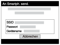 - Dieses Produkt teilt die Verbindungsinformationen für [An Smartph. send.] mit einem Gerät, das eine Verbindungserlaubnis hat. Wenn Sie das Gerät, das Verbindungserlaubnis mit dem Produkt hat, ändern wollen, nehmen Sie mit den folgenden Schritten eine Rücksetzung der Verbindungsinformationen vor. MENU → [Drahtlos] → [SSID/PW zurücks.]. Nachdem Sie die Verbindungsinformationen zurückgesetzt haben, müssen Sie das Smartphone erneut registrieren.