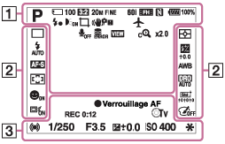 - Numéro de fichier/Nombre d’images disponibles dans le mode d’affichage sélectionné