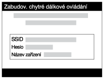 (Aplikace) → [Seznam aplikací] → [Zabudov. chytré dálkové ovládání]. - Když je přístroj připraven ke spojení, objeví se na přístroji informační obrazovka. Pomocí těchto údajů propojte smartphone s přístrojem.