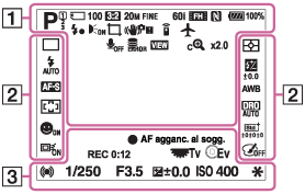 Elenco delle icone del modo di ripresa