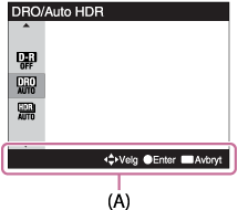 på midten av kontrollhjulet. Innstillingsskjermen for funksjonen vises. Følg veiledningene (A) for å foreta innstillingene.