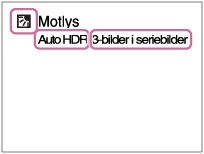 Når kameraet kjenner igjen en scene, vises ikonet for scenegjenkjenning på skjermen. Om nødvendig vises også den aktuelle opptaksfunksjonen for den gjenkjente scenen og hvor mange ganger lukkeren utløses.