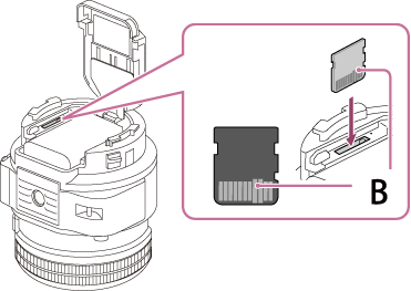 - Avaa kansi ja aseta paikalleen microSD-muistikortti tai Memory Stick Micro (M2) -media.