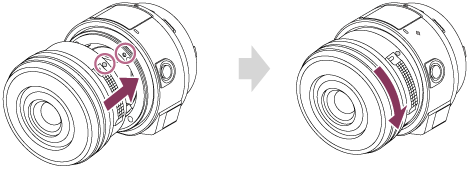 - Skru objektivet mot klokken mens du holder nede objektivutløserknappen.